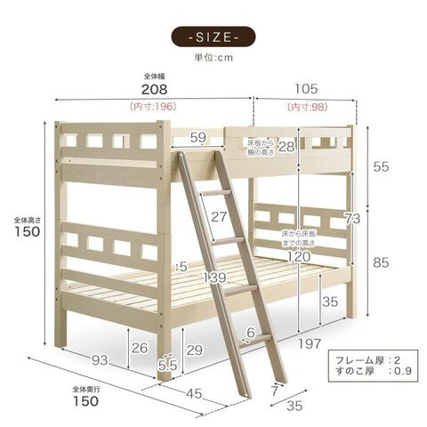 | フレーム:パイン無垢材(ラッカー塗装仕上げ) すのこ:積層合板 |