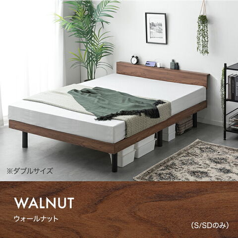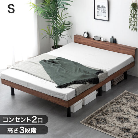 宮棚付きベッド 高さ調節OK 2口コンセント付 宮付き シングルベッド ベッド ベッドフレーム すのこベッド すのこベット ベット ベットフレーム コンセント おしゃれ 49600140〔ウォールナット〕【予約】12月下旬※12/31までに出荷予定