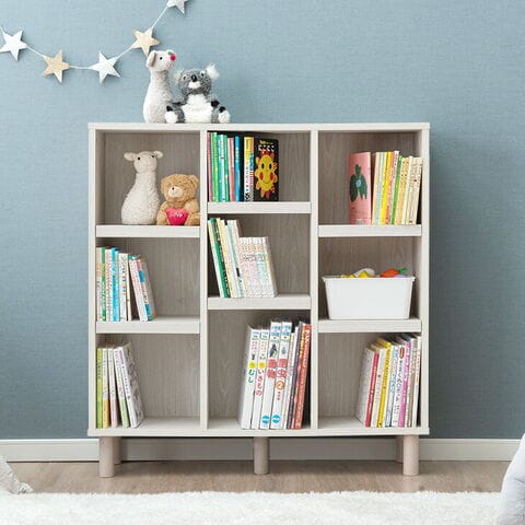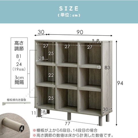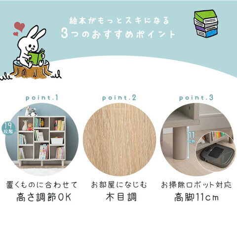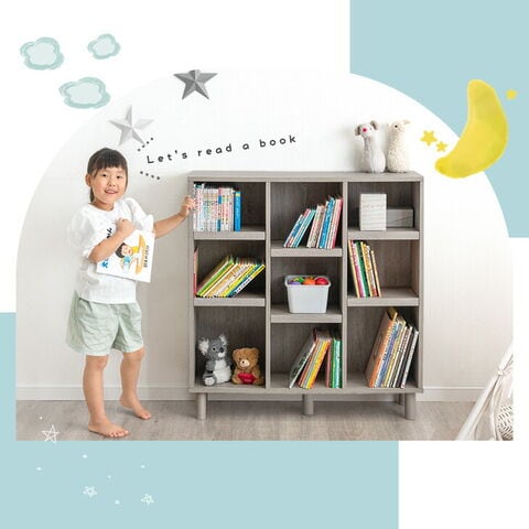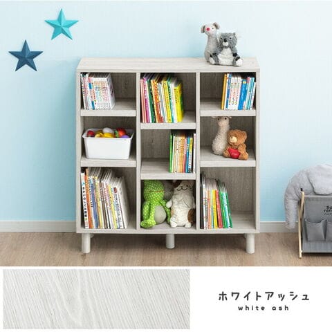 【即納】 まとめてすっきり アレンジ自在 絵本棚 幅90 3段 高さ調節 19段 大容量 絵本ラック 可動棚 収納 おもちゃ箱 キッズラック リビング ブックシェルフ キッズ 子供部屋 おしゃれ 4960027107〔シャビーナチュラル〕