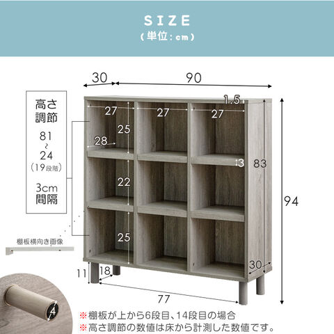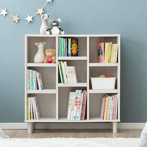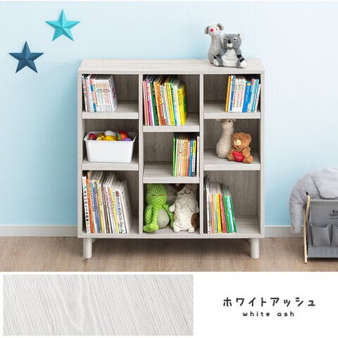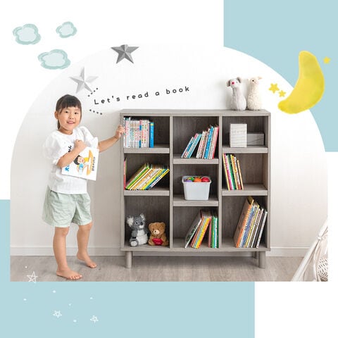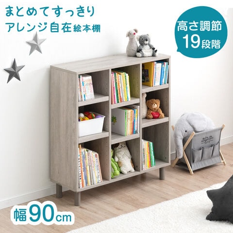 【即納】 まとめてすっきり アレンジ自在 絵本棚 幅90 3段 高さ調節 19段 大容量 絵本ラック 可動棚 収納 おもちゃ箱 キッズラック リビング ブックシェルフ キッズ 子供部屋 おしゃれ 4960027106〔アッシュグレー〕