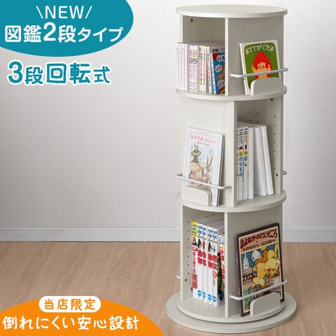 <倒れにくい安心設計> 回転絵本ラック 3段 図鑑2段タイプ 図鑑対応 絵本棚 収納 本棚 回転本棚 絵本ラック 回転ラック 回転式本棚 回転式 大容量 子供部屋 子供用 絵本 図鑑 おしゃれ 49600375〔ホワイトアッシュ〕【予約】2月上旬※2/10までに出荷予定