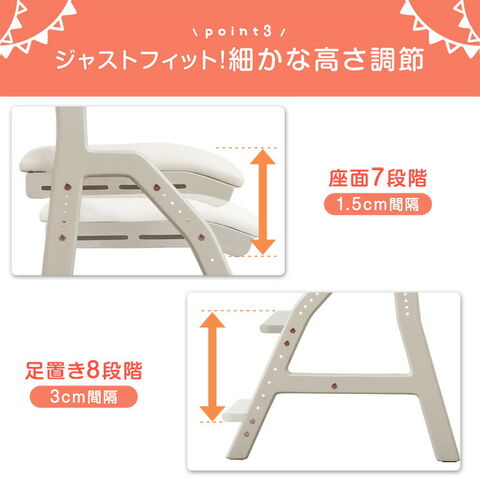 お掃除ロボット対応 現役ママが考えた 学習チェア リビング 学習 天然木 座面スライド 高さ調整 ハンギング チェア デスクチェア キッズ 学習椅子 足置き 4960029010〔ミルキーホワイト〕【予約】3月上旬※3/10までに出荷予定