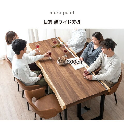 【搬入設置込み】極厚天板 ダイニングテーブル 単品 6人 6人掛け 200 × 80 天然木 アッシュ ウォールナット 耳付き 長方形 テーブル 食卓テーブル 食卓 幅200 200cm 木製 黒脚 【超大型】 99901150