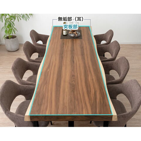極厚天板 ダイニングテーブル 単品 8人 8人掛け 240 × 80 天然木 アッシュ ウォールナット 耳付き 長方形 テーブル 食卓テーブル 食卓 幅240 240cm 木製 黒脚 玄関渡し【超大型】 49600302