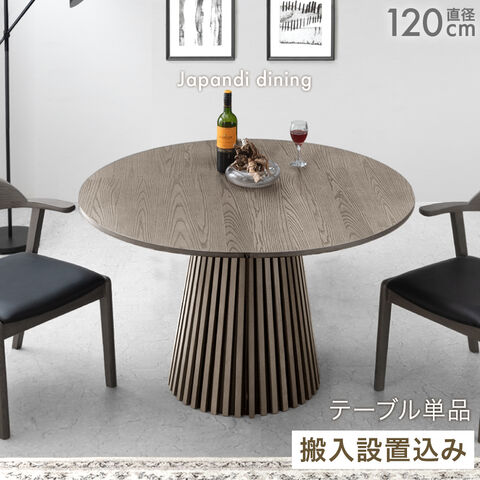 【搬入設置込】 円形 ダイニングテーブル 120 単品 4人掛け 丸テーブル 丸テーブルダイニング 円形テーブル 丸 丸型 円卓 木 木製 木目 格子 脚 4人 4人用 北欧 おしゃれ 【超大型】 99901125〔グレー〕【予約】2月下旬※2/28までに出荷予定