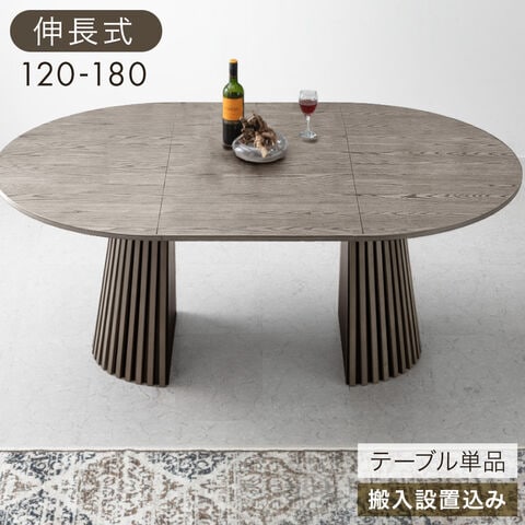 伸長 円形 ダイニングテーブル 4-6人掛け 120 180 伸長式ダイニングテーブル 伸長テーブル 丸テーブル テーブル 伸長 伸縮 エクステンション 丸 楕円【超大型】 49600310〔グレー〕