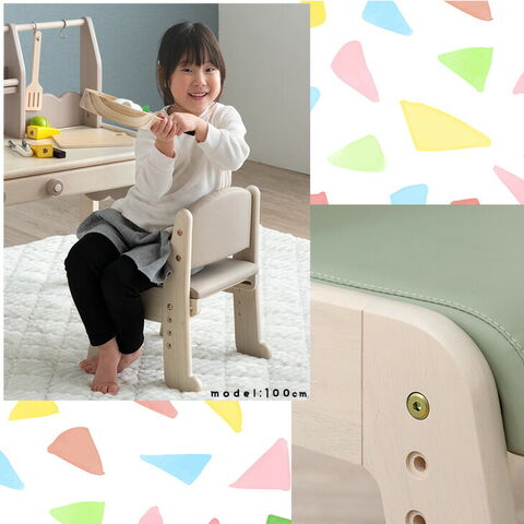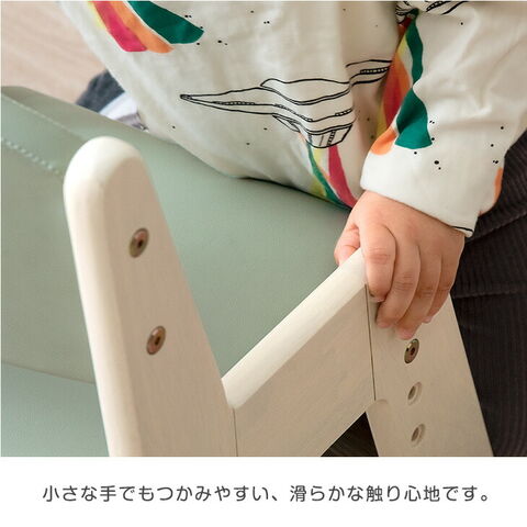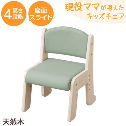 現役ママが考えた キッズチェア 天然木 座面スライド 高さ調節 4段 ロータイプ チェア デスクチェア 木製 ローチェア クッション リビング学習 幼稚園 保育園 49600314〔ホワイトウォッシュ×グリーン〕【予約】12月下旬※12/31までに出荷予定