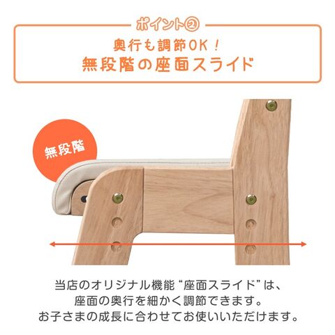 ・成長に合わせて細かく調節OK L【座面高さ:4段階/座面奥行:無段階】 ・足への負担を軽減 スロープ座面 ・あたたかみのある天然木使用 ・やさしい角丸デザイン ・安心安全のフォースター塗装 |