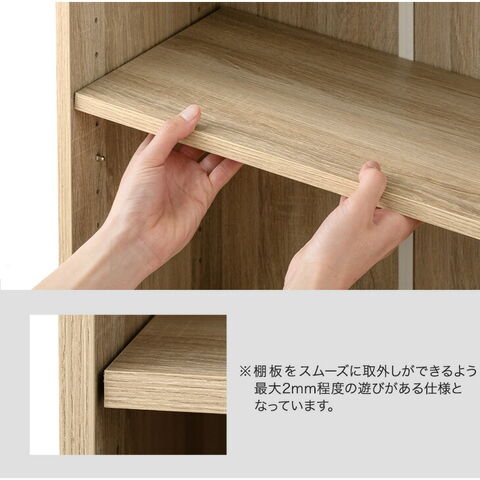 | 備考 | 【組立品】(1台あたり大人2人で約40~60分)、プラスドライバー付属 ※配送は全て宅配便(1人)での玄関渡しとなります。大型商品や重量商品、エレベーターの無い2階以上にお住まいのお客様は、玄関口までの搬入をお手伝いをお願いしております事をご了承ください。 ※傾斜や段差などがある不安定な場所では使用しないでください。 また、カーペットや畳などの柔らかい床での取り付けもお控えください。 ※商品の棚に乗ったり、踏み台としての使用はお控えください。 ※シャビーオークのカラーについては、木目に交差する光の筋のような模様がございます。こちらはオーク材などにみられる虎斑を再現したもので仕様となります。 |