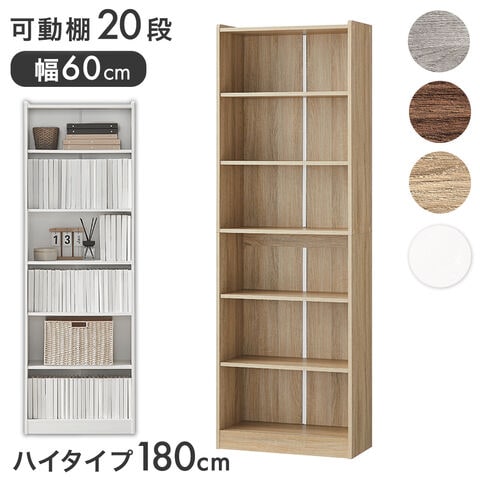 本棚 大容量 ハイタイプ 180 幅60 高さ180 奥行30cm 木製 オープン 縦長 収納 棚 スリム 書棚 ブックシェルフ シェルフ 漫画 マンガ 本 コミック ラック 収納 耐震 転倒防止 49600330〔シャビーオーク〕