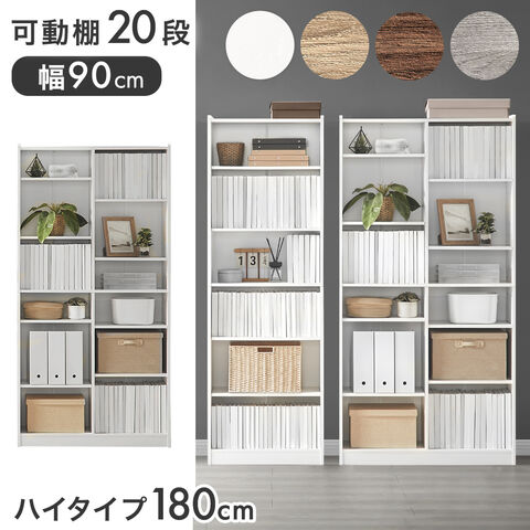 【即納】 本棚 大容量 ハイタイプ 180 幅90 高さ180 奥行30cm 木製 オープン 縦長 収納 棚 スリム 書棚 ブックシェルフ シェルフ 漫画 マンガ 本 コミック ラック 収納 耐震 転倒防止 49600331〔ピュアホワイト〕