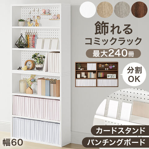 飾れる コミックラック パンチング&カードスタンド付 6段 3段 本棚 カラーボックス 幅60 パンチングボード 120 推し活 推し活ラック 木製 大容量 収納 棚 薄型 スリム 書棚 ブックシェルフ シェルフ マンガ 本 49600333〔ピュアホワイト〕【予約】1月中旬※1/20までに出荷予定