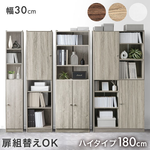 【即納】 扉組替OK ハイタイプ 180cm 本棚 扉付き 大容量 可動棚 幅30 木製 オープン 縦長 収納 スリム 扉付き本棚 シェルフ 漫画 カラーボックス ラック A4 おしゃれ 北欧 49600334〔アッシュグレー〕