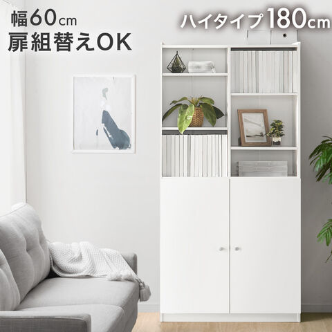 扉組替OK ハイタイプ 180cm 本棚 扉付き 大容量 可動棚 幅60 木製 オープン 縦長 収納 スリム 扉付き本棚 シェルフ 漫画 カラーボックス ラック A4 おしゃれ 北欧 49600336〔ピュアホワイト〕【予約】4月中旬※4/20までに出荷予定