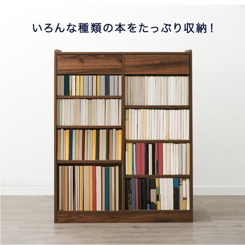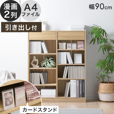 【即納】 カードスタンド&引き出し付き 本棚 A4 漫画 2列 対応 幅90 可動棚 木製 大容量 オープン 収納 ブックシェルフ ロータイプ 本 コミックラック 推し活 推し活ラック おしゃれ 49600339〔シャビーオーク〕