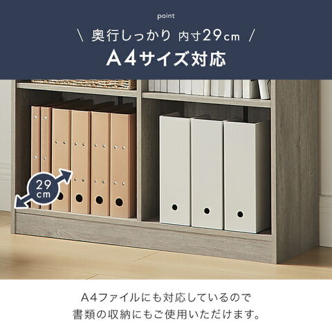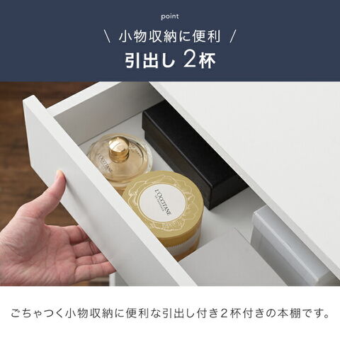 ・小物収納に便利な2杯の引き出し付き本棚 ・細かな調整で無駄なくしまえる23段階可動棚 ・奥行しっかり!A4ファイル対応 ・コミックサイズなら前後2列OK! ・写真やカードを立てれるカードスタンド付き ・天板まで使いやすい 落下ガード付き ・どんなお部屋にも置きやすいシンプルデザイン ・グラつきや揺れを抑える背板ストッパー付き ・傷防止フェルト付き |