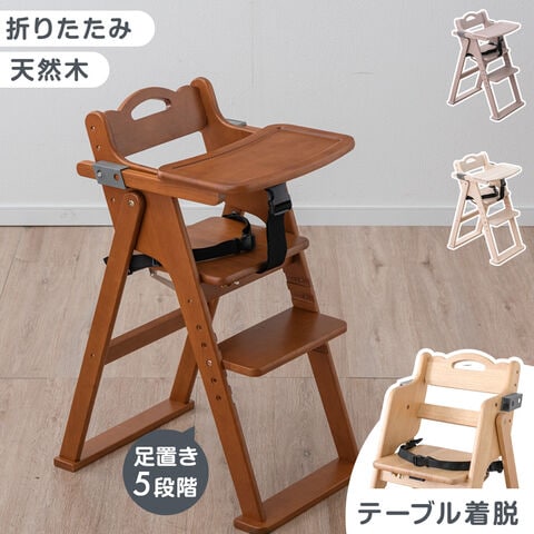 【即納】 折りたたみ ベビーチェア 天然木 テーブル 立ち上がり防止 ベルト 持ち運び 高さ調整 足置き 折りたたみ式 ハイチェア キッズチェア 机 木製 おしゃれ 49600342〔ブラウン(木目)〕