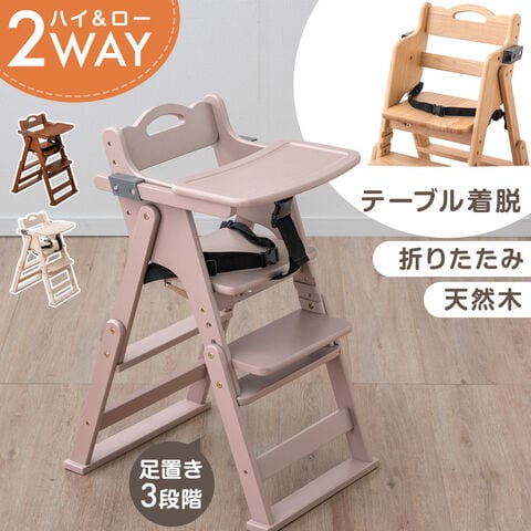 2WAYハイ&ロー ベビーチェア 天然木 テーブル 折りたたみ 持ち運び 立ち上がり防止 ベルト 高さ調整 足置き キッズチェア 木製 ベビー おしゃれ 49600343〔グレージュ〕【予約】12月下旬※12/31までに出荷予定