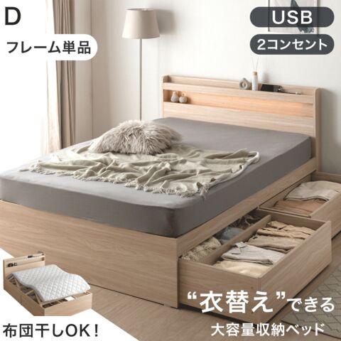 【即納】 衣替え 大容量 収納ベッド ダブル ライト付 USB コンセント付き 宮付き 収納付き 収納 引き出し 収納ベット ベッドフレーム ベットフレーム ベッド ベット 49600363〔シャビーアッシュ〕