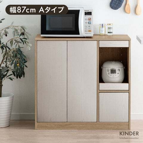【即納】 キッチンカウンター ロータイプ 幅87 Aタイプ 奥行39 高さ83 スライド棚 可動棚 食器棚 キッチンボード レンジ台 キッチンラック カウンター キッチン収納 スリム 木目調 おしゃれ 北欧 49600371 〔シャビーオーク×アイボリー〕