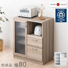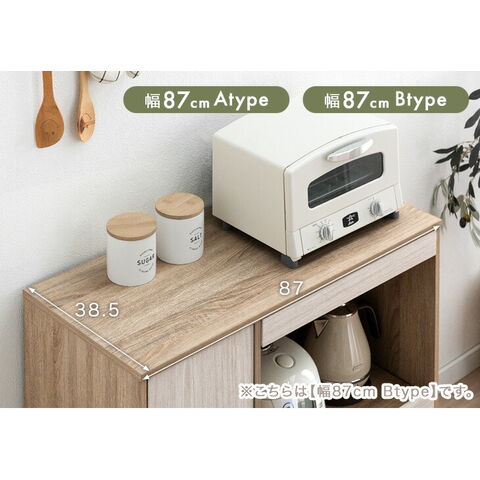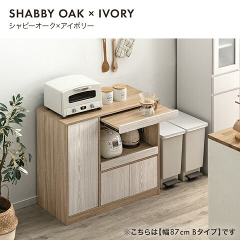 【即納】 キッチンカウンター ロータイプ 幅87 Bタイプ 奥行39 高さ83 スライド棚 可動棚 食器棚 キッチンボード レンジ台 キッチンラック カウンター キッチン収納 スリム 木目調 おしゃれ 北欧 49600372 〔シャビーオーク×アイボリー〕