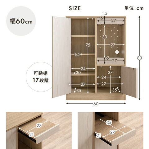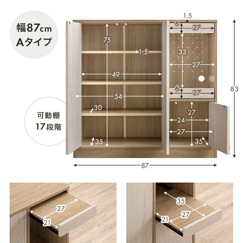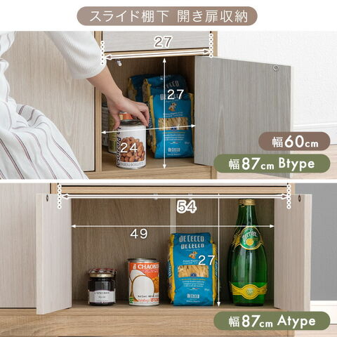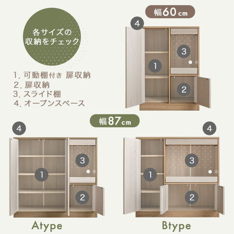 【幅60cm】幅60×奥行39×高さ83cm 【幅87cm Aタイプ】幅87×奥行39×高さ83cm 【幅87cm Bタイプ】幅87×奥行39×高さ83cm |