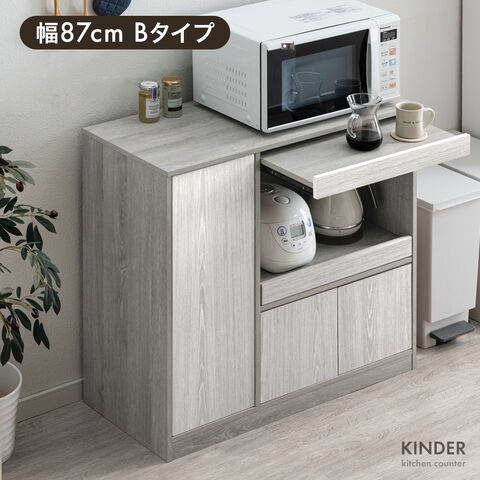 【即納】 キッチンカウンター ロータイプ 幅87 Bタイプ 奥行39 高さ83 スライド棚 可動棚 食器棚 キッチンボード レンジ台 キッチンラック カウンター キッチン収納 スリム 木目調 おしゃれ 北欧 49600372 〔アッシュグレー×ホワイト〕