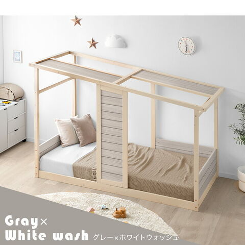 【新発売プライス】 “ひみつ基地”になる 家型 ベッド 木製 シングル キッズベッド システムベッド ロータイプ 子供 小学生 子供部屋 秘密基地 おうち 木 おしゃれ【超大型】49600383〔グレー×ホワイトウォッシュ〕【予約】2月中旬※2/20までに出荷予定