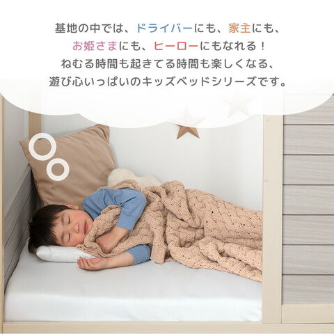 あこがれの秘密基地ベッド HIDE-A COTTAGE ・コテージみたいなかわいいデザイン ・乗り降りあんしんロースタイル ・ぬくもり感じる天然木使用 ・通気性抜群のすのこ床板で年中快適 ・安心の低ホルムアルデヒド 子どものための“あこがれの秘密基地ベッド”シリーズ、HIDE-A(ハイドエー)。 自分だけの場所を持つことは、子どもが自立していく第一歩。 海外で人気のテーマベッドを、日本の暮らしに合わせて設計しました。ベッドの上からはじまる冒険と自立。 HIDE-Aシリーズは、お子様の眠りと成長をサポートします。 |