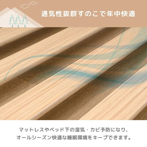 | 素材 | フレーム:天然木パイン集成材、天然木化粧繊維板(ラッカー塗装) すのこ:積層合板(LVL))(無塗装) |