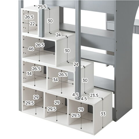 寝台部:約250kg デスク:約40kg 引き出し:約10kg(1杯あたり) 階段:約500kg ロフト下ラック:約15kg(1段あたり) |