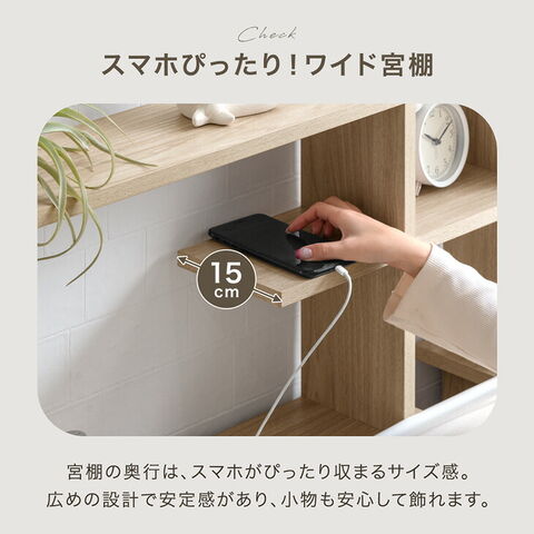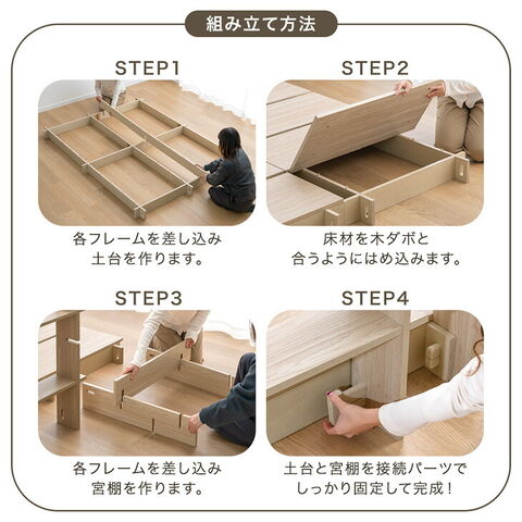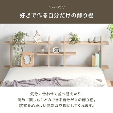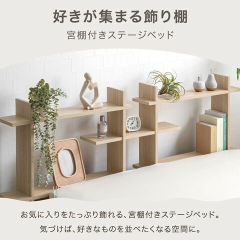 好きが集まる飾り棚 宮棚付きステージベッド ・お気に入りをたっぷりディスプレイできる宮棚 ・ゆとりがおしゃれさを生む ステージベッド ・両サイドのスペースは小物置きとしても活用OK ・お部屋すっきりロースタイル ・工具不要!はめ込むだけの超カンタン組み立て ・傷防止フェルト付き |