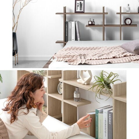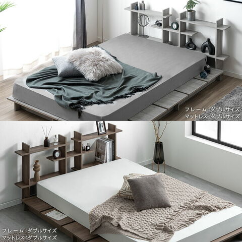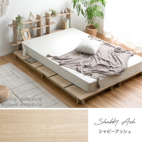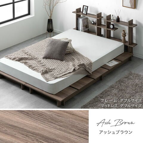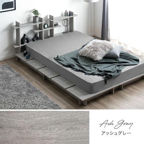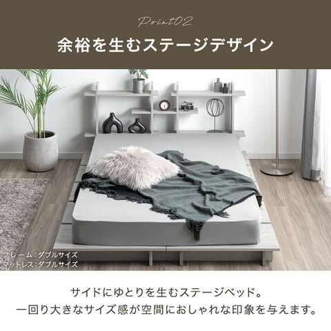 【即納】 ディスプレイを愉しむ。ステージベッド ダブル 宮棚付き ベッドフレーム 単品 木製 宮付き 宮棚 ステージベット ローベッド フロアベッド 木製ベッド ベッド すのこ 49600403〔シャビーアッシュ〕
