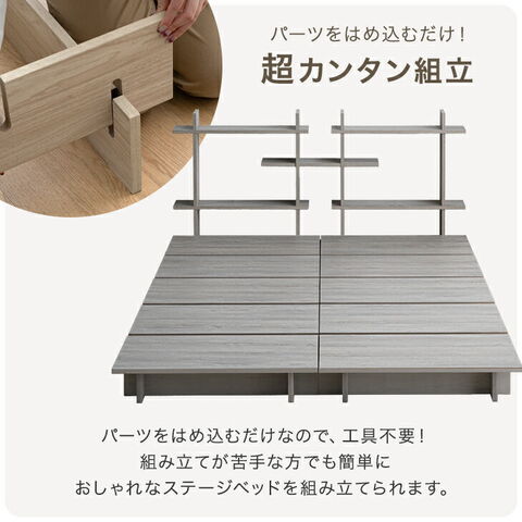 【新発売プライス】 ディスプレイを愉しむ。ステージベッド ダブル 宮棚付き ベッドフレーム 単品 木製 宮付き 宮棚 ステージベット ローベッド フロアベッド 木製ベッド ベッド すのこ 49600403〔シャビーアッシュ〕【予約】1月上旬※1/10までに出荷予定