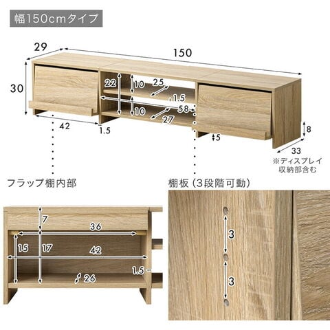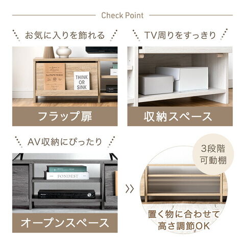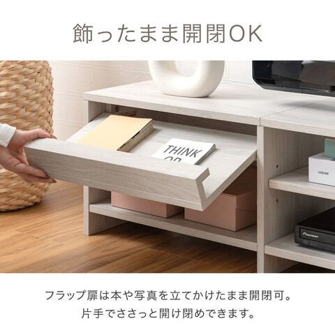 飾れる、隠せる、魅せるテレビ台 ・お気に入りを飾れるフラップ扉 ・生活感を隠せる収納スペース ・収納物に合わせて調節できる3段階可動棚 ・キズに強いオール強化紙仕様 |
