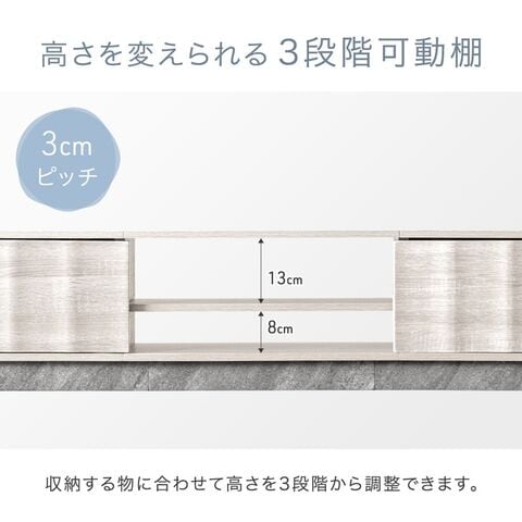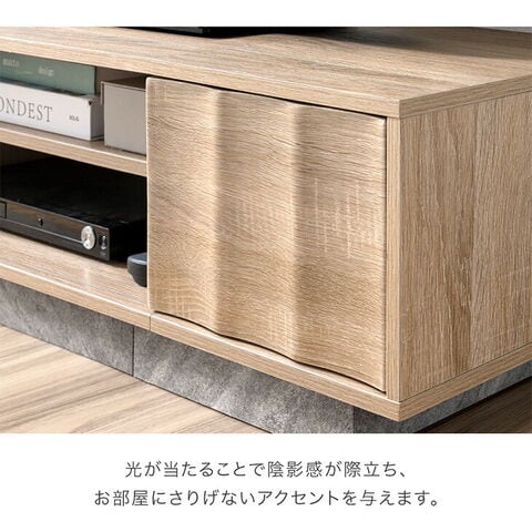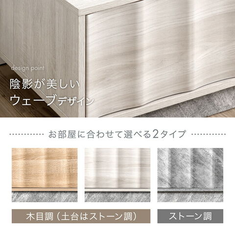 ・陰影が美しいウェーブデザイン ・生活感を隠せる扉付き収納 ・置く物に合わせて調節OK 3段階可動棚 ・お部屋に合わせて選べる2タイプ …落ち着いた色味&ツートン仕様の木目調 …スタイリッシュなストーン調 |