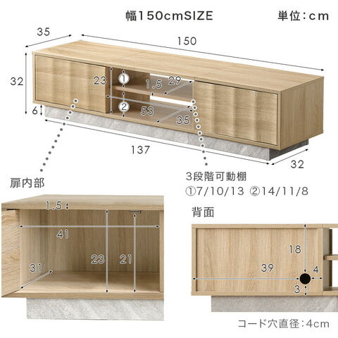 【即納】 【新発売プライス】 テレビ台 150cm 収納 ローボード テレビラック ロータイプ リビング モルタル 石目調 木目調 木製 小さい コンパクト 150センチ 32~ 50インチ 北欧 モダン おしゃれ 49600420〔ストーングレー〕