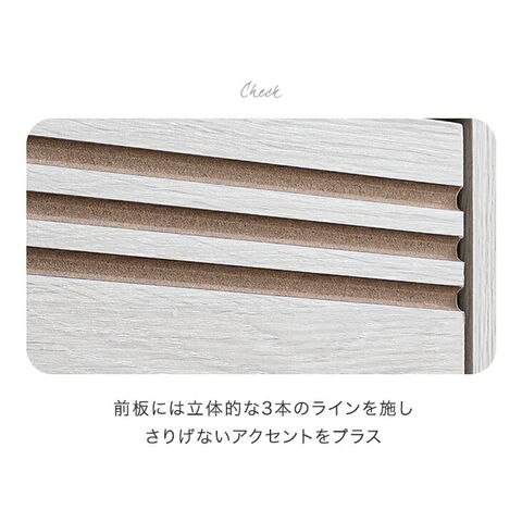 ・魅せる収納、隠せる収納どちらも叶えるテレビボード ┗お気に入りを飾れるディスプレイラック ┗生活感を隠せる引き出し収納 ・あたたかみのある木目調 ・前板のラインがデザインのアクセントに ・収納物に合わせて調節できる3段階可動棚 ・キズに強いオール強化紙仕様 |