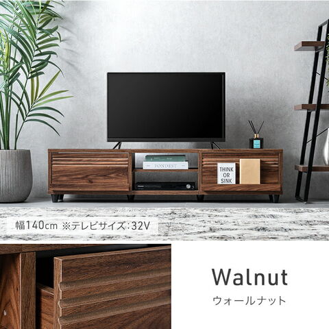 【即納】 【新発売プライス】 魅せる テレビ台 140cm 収納 引出し ローボード テレビボード TVラック TVボード AVラック ロータイプ 大容量 木目調 木製 140センチ 32~55インチ 北欧 おしゃれ 49600422〔ウォールナット〕
