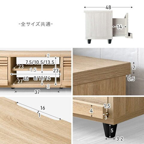 | 対応インチ | 32~60インチ対応 主な対応インチ:32インチ、40インチ、43インチ、45インチ、50インチ、55インチ、60インチ |
