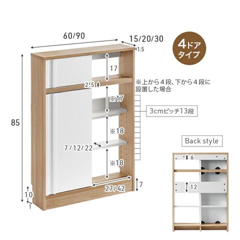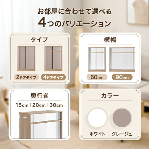 【2ドア/幅60/奥行15】89×15×34cm 【2ドア/幅60/奥行20】89×15×34cm 【2ドア/幅60/奥行30】89×17×34cm 【2ドア/幅90/奥行15】94×13×49cm 【2ドア/幅90/奥行20】94×14×49cm 【2ドア/幅90/奥行30】94×15×49cm 【4ドア/幅60/奥行15】87×19×34cm 【4ドア/幅60/奥行20】87×20×37cm 【4ドア/幅60/奥行30】89×17×34cm 【4ドア/幅90/奥行15】94×13×49cm 【4ドア/幅90/奥行20】93×18×49cm 【4ドア/幅90/奥行30】94×22×49cm |