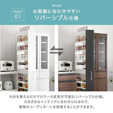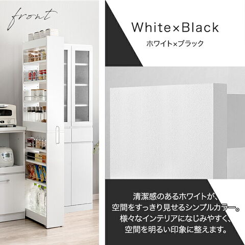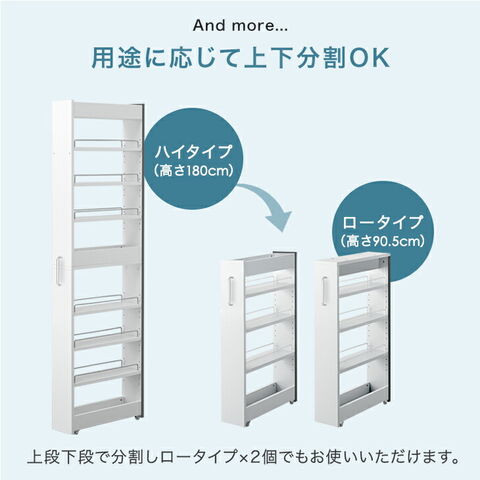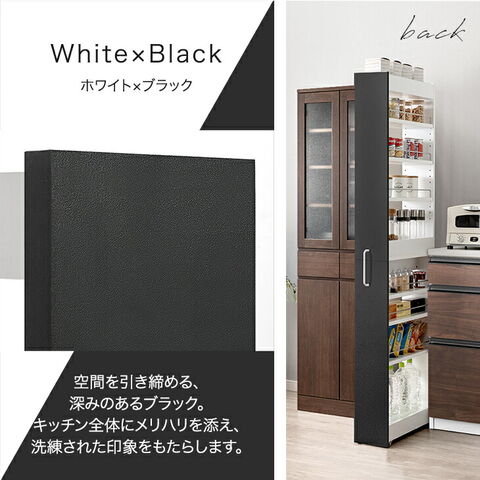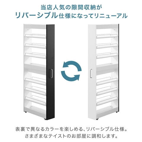 【即納】 リバーシブル 隙間収納 幅18cm ハイタイプ 上下分割OK キャスター付き 隙間ワゴン キッチン収納 可動棚 スリム 冷蔵庫パントリー ストッカー 49600456〔ホワイト×ブラック〕