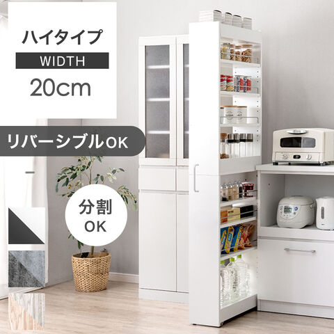 【即納】【新発売プライス】 リバーシブル 隙間収納 幅20cm ハイタイプ 上下分割OK キャスター付き 隙間ワゴン キッチン収納 可動棚 スリム 冷蔵庫パントリー ストッカー 49600457〔ホワイト×ブラック〕