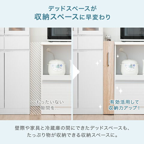 ・ご自宅の隙間に合わせて選べる6サイズ ・必要な時だけ引き出して使えるスライド式 ・左右から取り出せる両面オープン構造 ・キッチンや脱衣所で大活躍! ・出し入れ簡単!キャスター 付き ・棚板は収納物に合わせて高さ調節OK ・水に強いメラミン素材 ・錆びにくいアルミ取手とステンレス転び止め |
