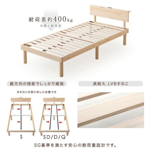 【即納】 宮棚&2口コンセント付 ベッドフレーム 単品 クイーン 天然木 すのこベッド すのこベット クイーンベッド クイーンベット ベットフレーム ベット コンセント 宮付き 木製 宮棚 北欧 49600864 〔ナチュラル〕