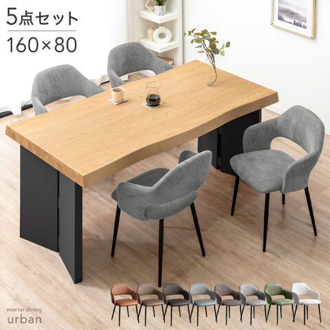 ダイニングテーブルセット 4人掛け 5点 アッシュ パネル脚 木製 モルタル 調 おしゃれ 【超大型】49610271〔テーブル:ナチュラル×ブラック/チェア:レドグレー(ファブリック)〕