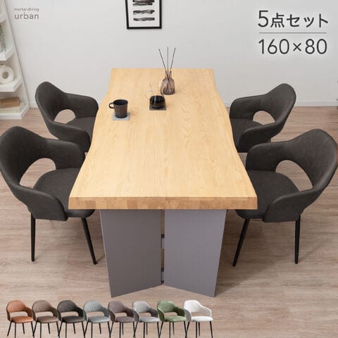 テーブル ・極厚70mmの天然木アッシュ天板 ・高級感と温もりを生む“なぐり加工” ・モダンなモルタル調パネル脚 ・4人でゆったり使える幅160cm チェア 【レザータイプ】 ・しっとり滑らかソフトレザー ・使い込まれたような風合い エイジング加工 【ファブリックタイプ】 ・年中さらっと快適 ・お手入れ簡単な撥水加工 |