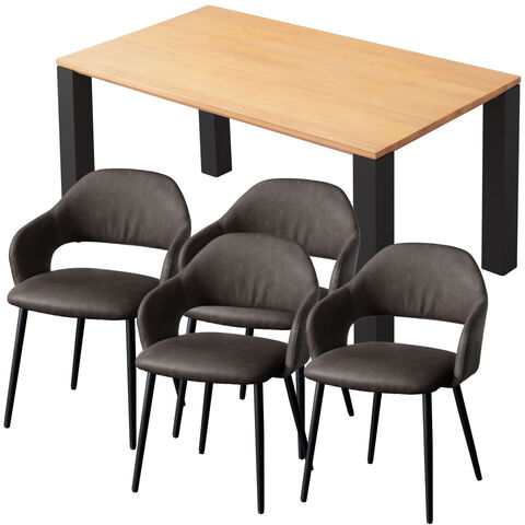 モルタル調 アッシュ ダイニングテーブル セット 4人掛け 肘付き チェア 5点セット おしゃれ 【超大型】 49610274〔テーブル:ナチュラル×ブラック/チェア:ブラウニーブラック〕