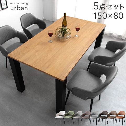 モルタル調 アッシュ ダイニングテーブル セット 4人掛け 肘付き チェア 5点セット おしゃれ 【超大型】 49610274〔テーブル:ナチュラル×ブラック/チェア:アッシュグレー〕