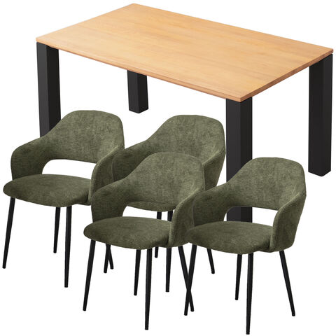モルタル調 アッシュ ダイニングテーブル セット 4人掛け 肘付き チェア 5点セット おしゃれ 【超大型】 49610274〔テーブル:ナチュラル×ブラック/チェア:モスグリーン〕